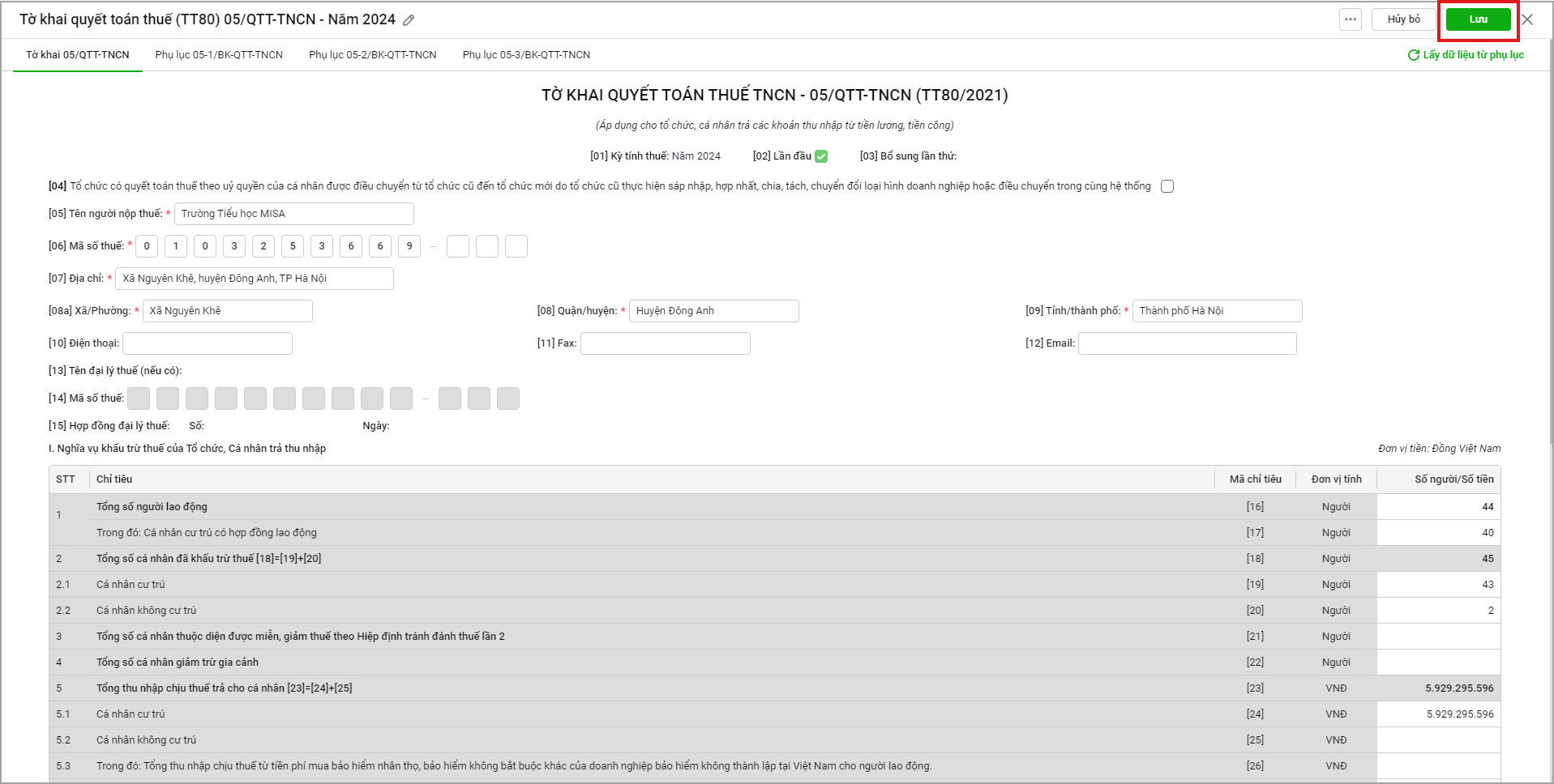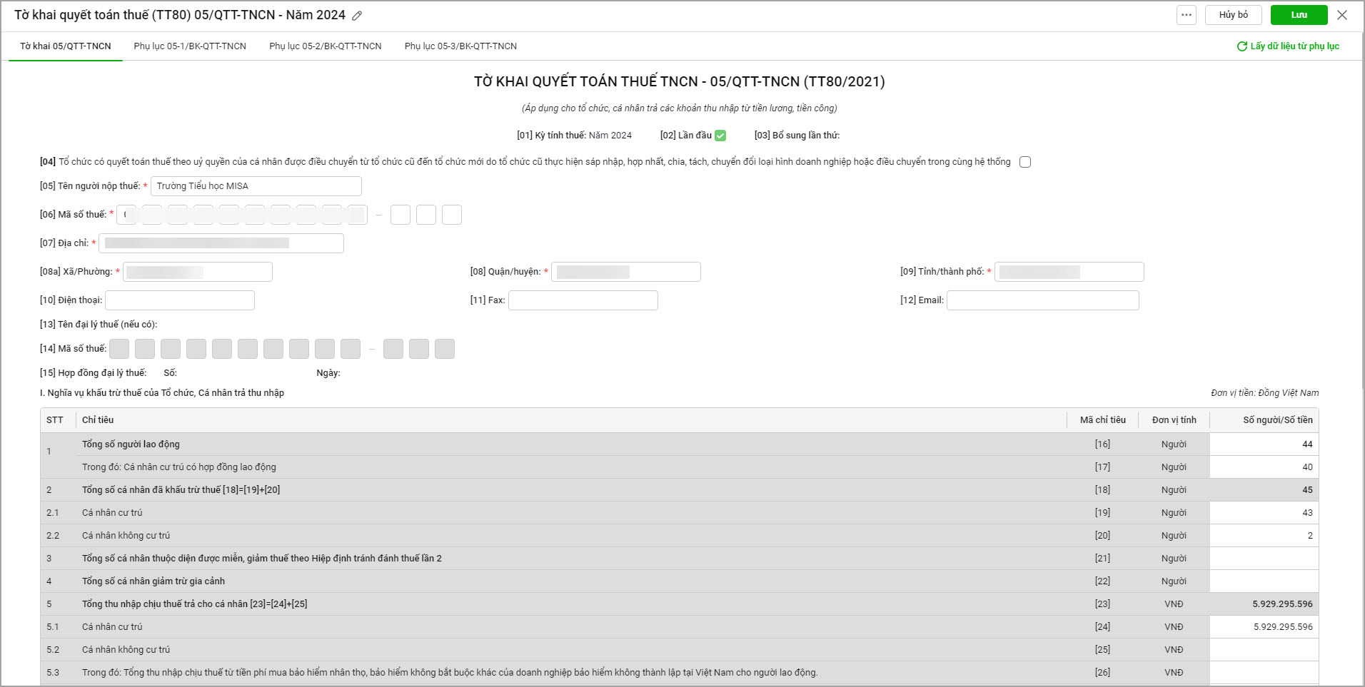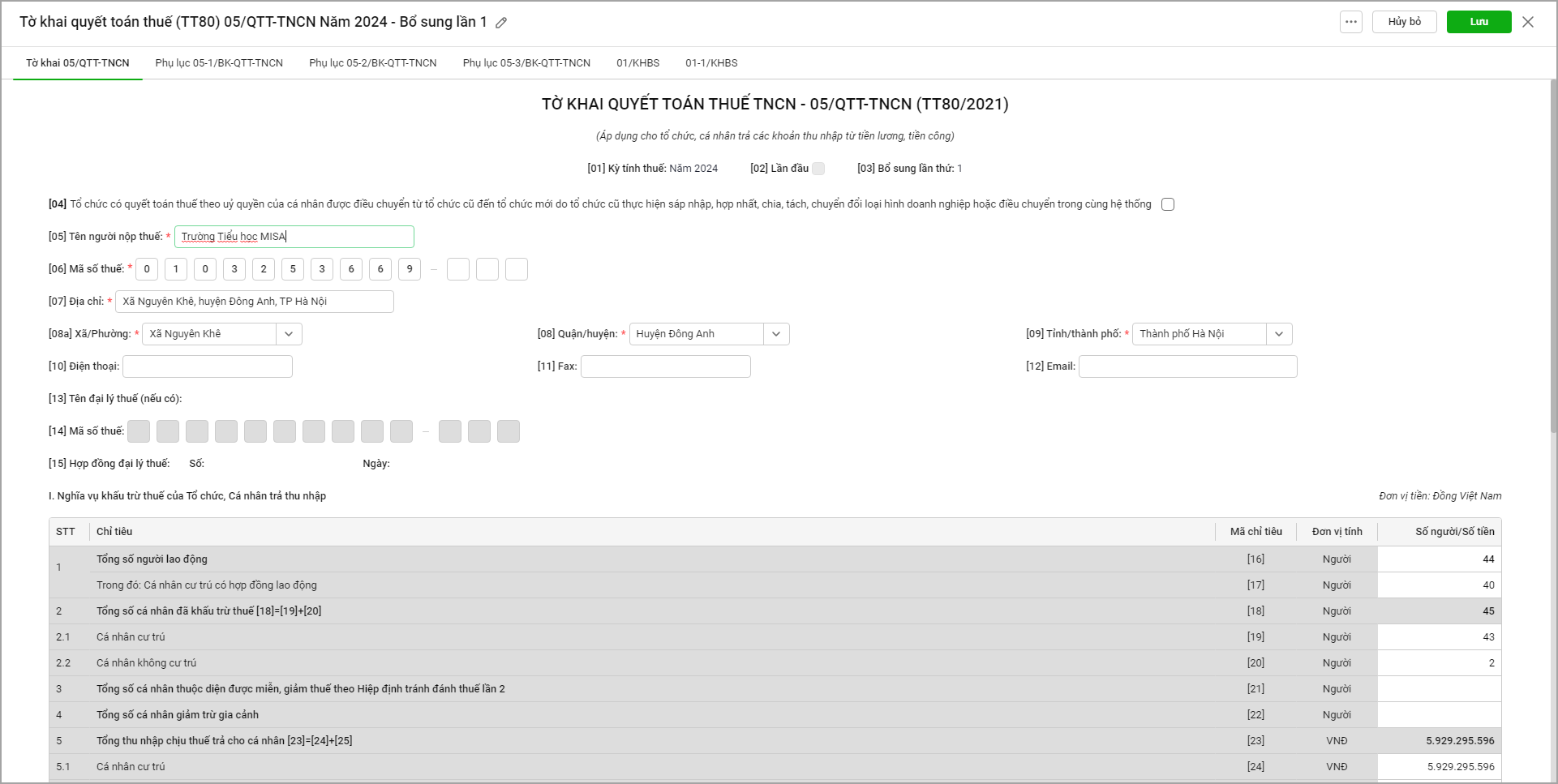 Việc lập Tờ khai quyết toán thuế TNCN mẫu 05/QTT-TNCN (TT80) giúp đơn vị tổng hợp toàn bộ thu nhập và số thuế phải nộp của CBNV trong năm để gửi cơ quan thuế. Tuy nhiên, nhiều trường hợp anh/chị gặp khó khăn trong việc tổng hợp dữ liệu từ bảng quyết toán và lập đúng tờ khai (lần đầu hoặc bổ sung).