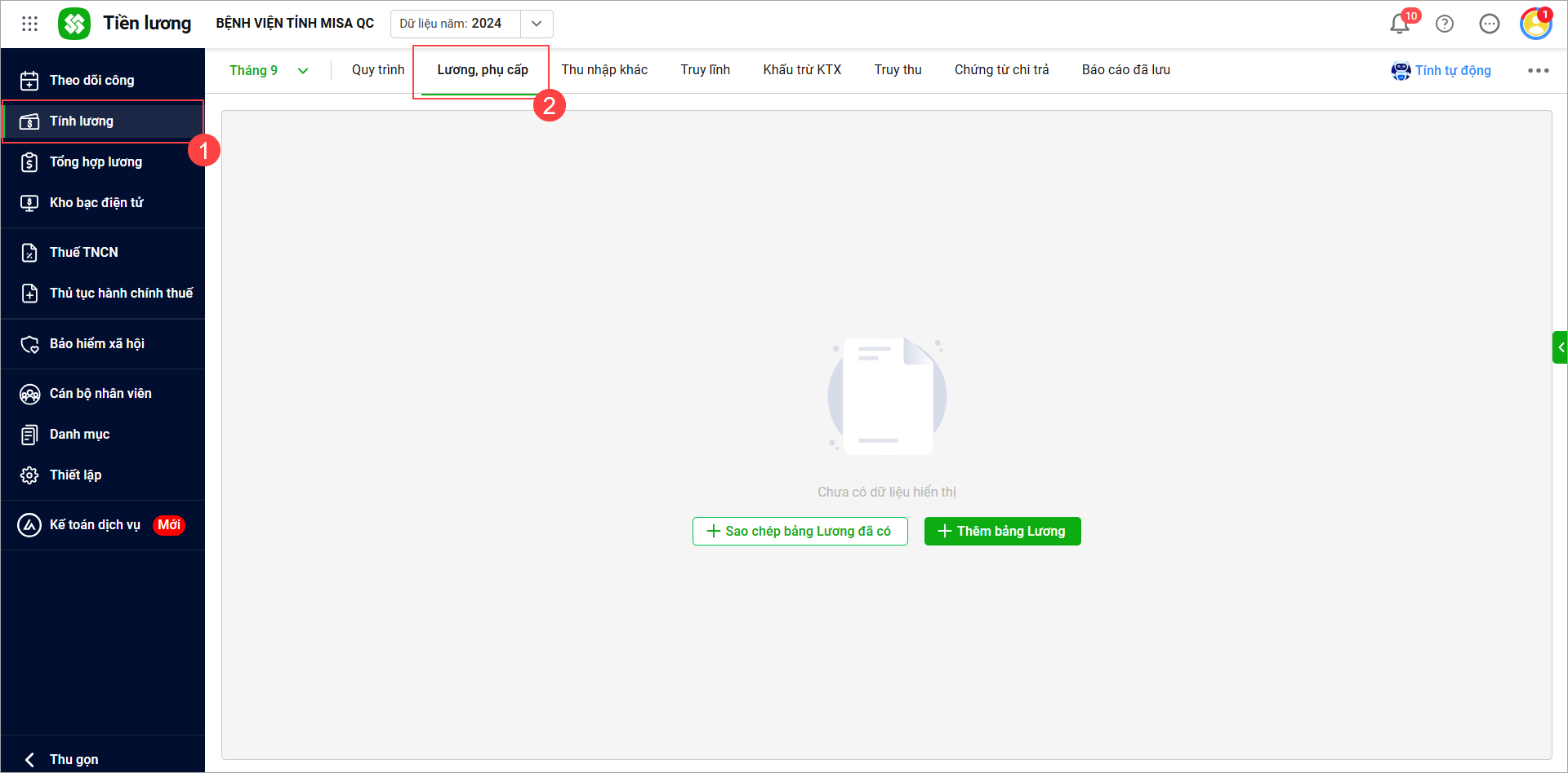 - Chọn Tính lương