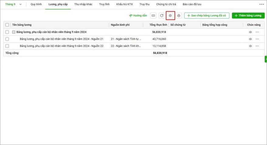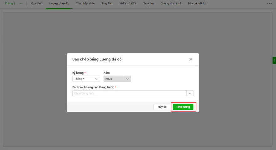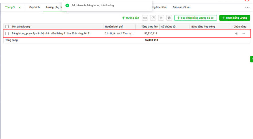 Bảng lương mới sẽ được sinh từ bảng lương đã có