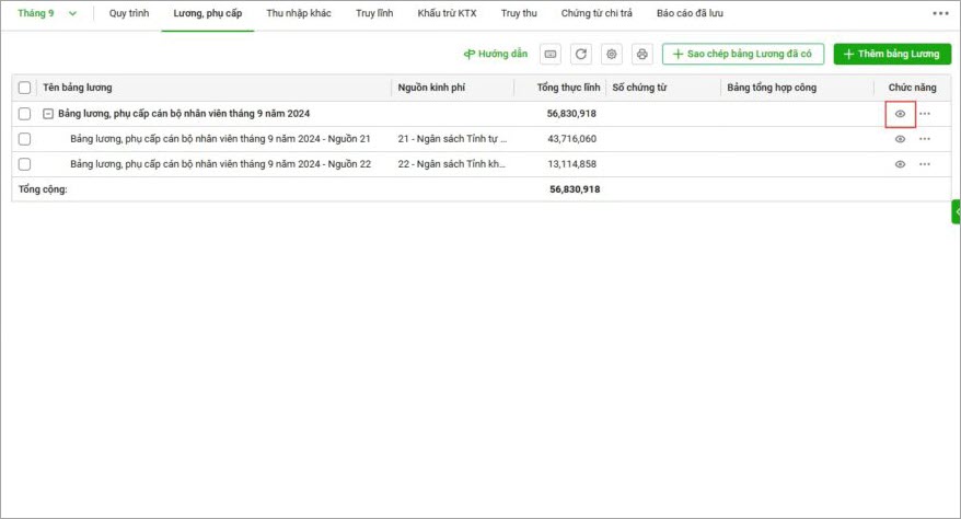 Bảng lương mới sẽ được sinh từ bảng lương đã có