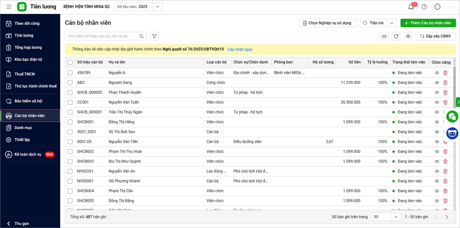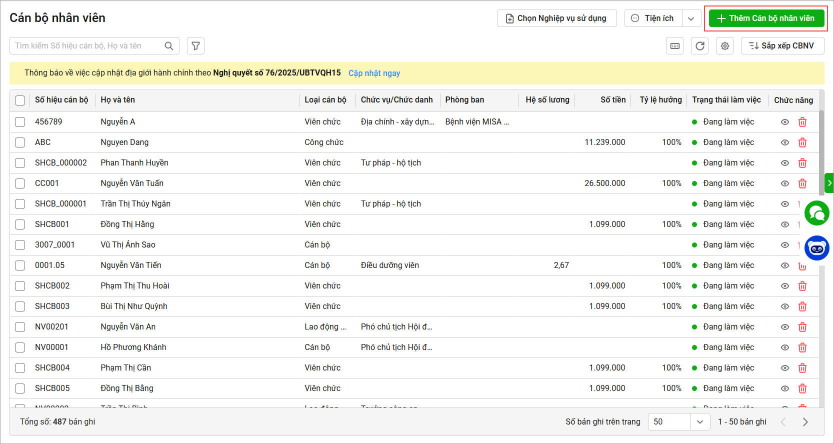 1. Vào menu Cán bộ nhân viên