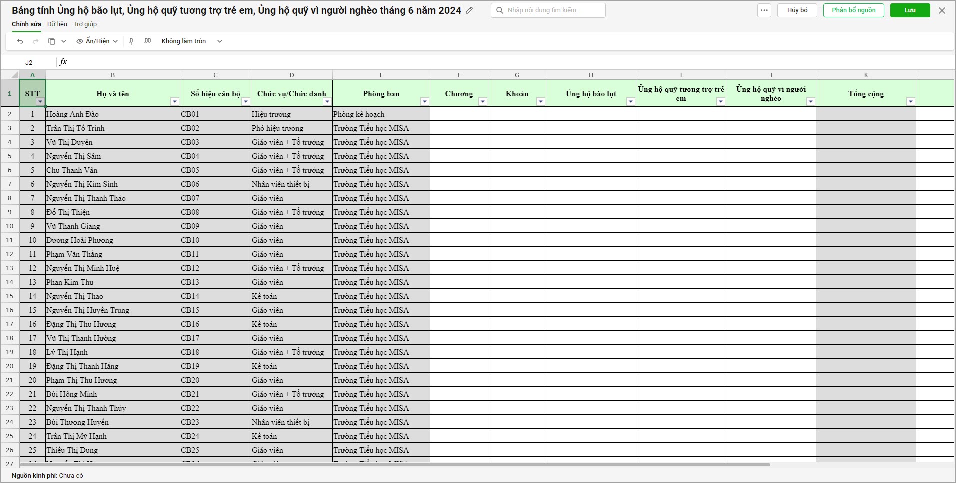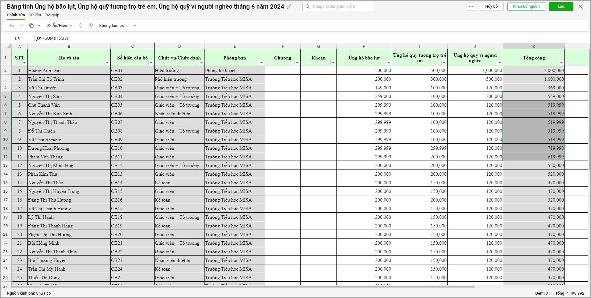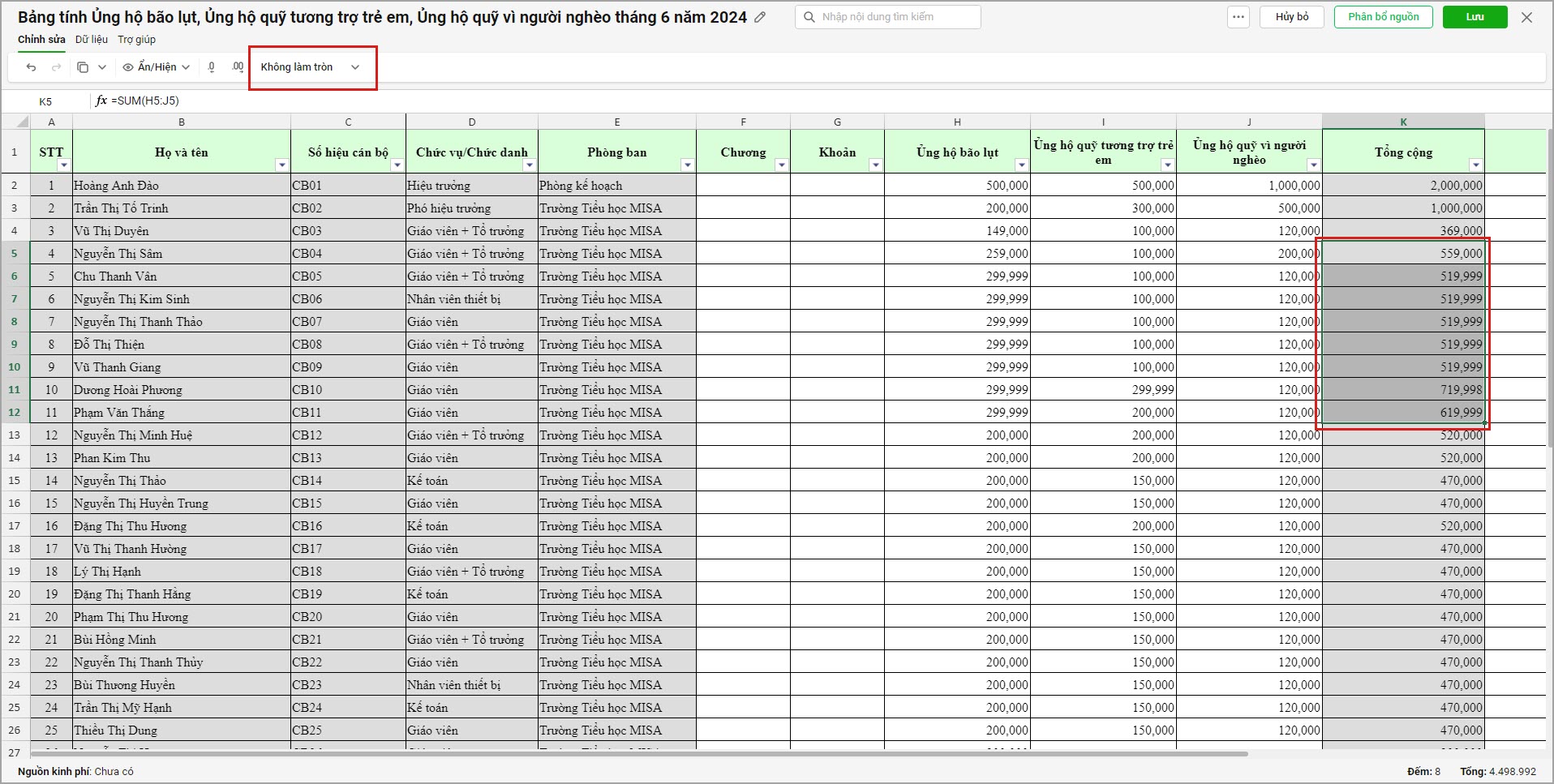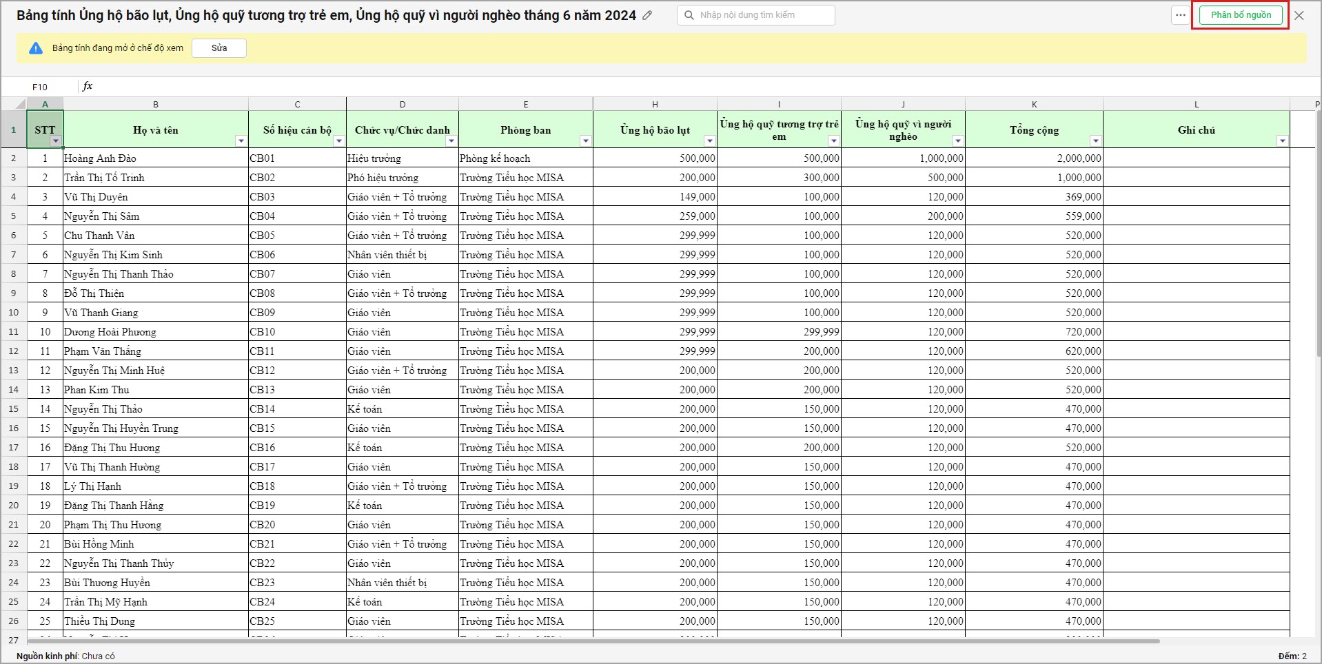 Ví dụ: anh/chị cần xem báo cáo 1% tiền đóng đảng phí, ủng hộ lũ lụt,… đã tính