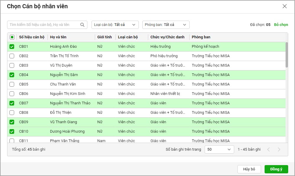 - Gửi phiếu thu nhập cho CBNV